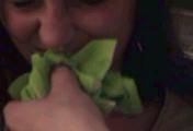 This video is a special delicacy for people who love gagging. Yvi"s little mouth is full of gags made of paper. As the dry paper is very unpleasant Yvi has to struggle with the gags.