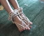 Babsi working for us as a new model is a very cute girl. She comes from Vienna and is very mad about bondage. We tried different types of bondage. We have just given her our questionnaire which every new model gets and then we tried all the different things with her she allowed us to do. First we bound her with ropes, of course also around her toes. Then she had to do some exercises as pony girl. Finally, she was put into a straightjacket and her mouth was provided with a device to spread it. Then we fastened her with iron. The highlights are 2 great scenes in which Babsi is suspended. Babsi is the first model, who managed it to be suspended so that both her hands and feet are tied only with a rope. Great...