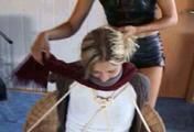 Winter Bondage Jassi was quite happy for her afternoon session to be cancelled and prepared for a lovely evening in front of the tellevision. It was a cold January day and Jassi didn’t regret wearing a thick jumper, long shawl and thick winter hat. When Jassi got back to her plave at around 4pm, she wondered why the light would be on in the house. Monique said that she was going to be late. As she entered her room, she looked on in shock as her clothes where scattered on the floor and Monique stood there wearing Jassi’s new jeans and new jumper. What are you doing in my room going through my things? Jassi asks Monique. What are doing in my cupboard? Jassi was upset. Don’t sweat it, replies Monique. I wanted to see what your fashion is going to be this winter and just just wanted to borrow this thick jumper. That’s enough says Jassi. Get out. You could have at least asked me. We agreed that we keep our own private space when we moved together. Monique thought it be strategically better if she left. Jassi realized that she was still wearing the think winter clothing. She took them off and set down on the bed to take a breather. That was it, she thought to herself. She had known Monique for a long time now and they’re good friends, but living together doesn’t seem to work out. A little later Jassi goes to the bathroom, but Monique was already in it. I’m sorry says Monique, it won’t happen again. That’s right, replies Jassi. You can pack up and the day after tomorrow you’er out of here. There are just too many things that happened lately. You can’t do that, says Monique; where am I supposed to go? I rented this flat and you are moving out said Jassi and went back to her room. Five minutes later Monique comes into Jassis room. Jassi immediately says there is nothing more to discuss. Please Jassi, let me stay. I will accept any punishment you wish to dish out. Really, any punishment. She has no idea of what she is letting herself into. Ok then, to the good of our longlasting friendship, I’ll give in if you accept the punishment. You will everything I say, says Jassi. I will, answers Monique. She knows Jassi, she’s normally not going through with all her plans. But this time she will… A week later Monique gets back from Uni in the evening. Jassi is already home. Hello Monique, today is the day of your punishment, says Jassi. Monique had already forgotten about the whole thing and had hoped that Jassi would forget too. Ok, says Monique, what shall I do? The dishes, clean the house or what? You’ll find out replies Jassi. On your knees in front of me orders Jassi. What do you mean asks Monique. Remember your promise Jassi reminds her. Monique hesitantly does as told and kneels in front of Jassi. We’ll play a round of …, and you can imagine what else will be on the agenda. Before she knew it, Jassi pulled a hat over Moniques head and tied a scarf over her eyes. So, get going then says Jassi. After a while Monique finds the pot and removes the blindfold. She lifts the pot under which Jassi had put a rope, handcuffs and a scarf. What’s up with that asks Monique. I will introduce some of my winter clothes to you, but rather different to what think. You’re nuts, I’, leaving says Monique. Then take your suitcase replies Jassi. Ok, you win what next then, resigns Monique. Put on this thick jumper here and sit down on the chair there and wait for me. Before she realized, Jassi quickly cuffs her hands behind her back. Monique walked over to Jassi’s room and sits down on the chair and waits. After a while Jassi enters the room. Monique starts laughing out loud, what the hell do you look like, a domina? says Monique. Jassi had dressed all in leather. Yes, a domina; one that will teach you manners; something that is apparently necessary. Jassi begins to tie Monique rather skillful to the chair. When Jassi finished, Monique couldn’t move an inch. So let’s begin the fashion show. I have some hats here and some shawls. I’m sure they’ll suit you. Jassi brought some 7 or 8 hats and shawls, which she put on Monique one by one, each time with fitting commentary and taking a picture. The picture will do well on the Uni’s notice board, don’t’ think says Jassi. You don’t dare replies Monique. You know what hats and shawls are also good for? For blindfolding and gagging. Would you like to try? Jassi tied the different shawls over Monique’s eyes and moth and also put all the hats over her head. Okay says Monique. You had your fun, now untie me. I haven’t even started yet replies Jassi. Now we will pay your feet some attention. But your moaning starts to annoy me. Jassi takes a shawls and gags Monique. Then Jassi tickles Monique all over and works her feet. Then she unties Monique. Knee in front of me again ordered Jassi. Monique has given up resisting. Rather hoping that by going along with it, the drama will finish quicker. Monique kneels in front of Jassi who hands her a note and orders her to read it out loud: I, Monique, deserve punishment. Please tie me up, blindfold me, gag me and take me for a walk. Your wish is my command says Jassi. She ties Monique’s hands with a shawl behind her back, runs a rope around her breasts and shackles her feet. Finally she puts a leash on and leads Monique through the room. Later Monique must walk alone through the room. Next, you will go to the bathroom and put on what os laid out there for you, orders Jassi. Monique obeys and goes to the bathroom. There she puts on the clothes and returns to Jassi. Looks lovely says Jassi and proceeds to tie Monique to the cross. The punishment will increase a little now and takes a whip in her hand. Please no, begs Monique. I’m really sorry. You have to learn respect replies Jassi. Please blindfold me; I cannot watch this, saya Monique. No, I want you to see what is going on. No, please blindfold me. Ok then, what do you prefer, the shawl or the black woolen hood, asks Jassi. I don