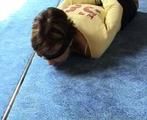 Ever since Monique was tortured by Nora (Evil Sister), she is out for revenge. She employs Merlin to give Nora some of her own medicine. Merlin abducts Nora and lets her suffer just as she had Monique suffer. To begin with, Nora has her hands and feet tied with zip ties. Then she is put in the uncomfortable 'Storch'. Her arms are tied in a rather painful position. Her toes get clothes pins attached. Then she must walk through the room in the 'Storch'; that is extremely difficult and the metal rubs on her skin. After that she gets thumb and toes screws applied, just as they did with the witches in the old days. Merlin tightens the screws… But this is not the end. Nora legs are put into a frame which keeps her legs in certain angles. Of course, Merlin chooses a rather uncomfortable angle for Nora. Added to that are specific arm fixings and legs braces. Nora can hardly move, but Merlin coerces her to walk to the room next door. There her hands and feet are tied with rope to the wooden beams and her head is put into an enclosed head cage, which subdues all her senses. Nora stands helplessly in the room. What's going to happen next? Actor: Nora and Merlin Camera: Morgana