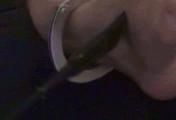 During the last ten minutes of the video she (wearing the same outfit and cuffs) crawls on all fours to clean the kitchen floor. Having that lace bonnet she looks like a French maid. She is shown espacially from the back so that I can watch her bottom move and her bound feet.”